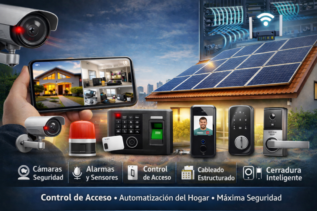 Proteger y modernizar tu hogar o negocio hoy es más fácil integrando soluciones como cámaras de seguridad, alarmas, control de acceso, paneles solares y redes (networking), ya que te permiten monitorear en tiempo real, prevenir robos, gestionar quién ingresa, reducir costos de energía y mantener una conexión estable para todos tus dispositivos; todo esto se traduce en mayor seguridad, control total desde tu celular, eficiencia operativa y tranquilidad tanto para tu familia como para tu empresa.